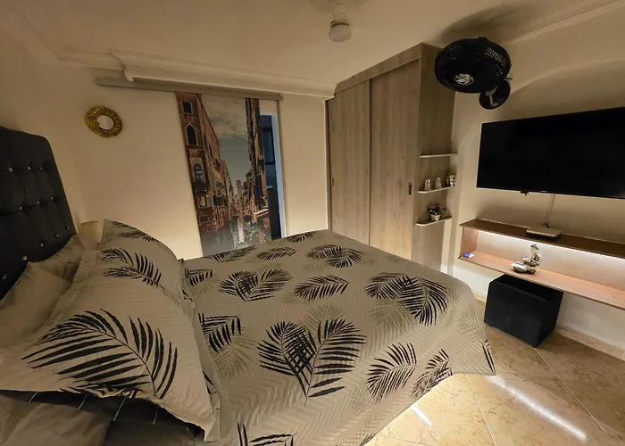 Overlooking the garden, the 35 m² Studio Cerca A Estacion Metro Poblado Medellin is 3.4 km from the heritage museum "Casa Museo Otraparte" in Medellin. The apartment has a patio with views of the street.